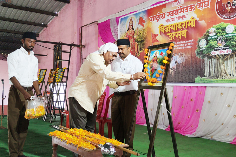 विजयादशमी शौर्य और पुरुषार्थ को जागृत करने वाला पर्व है। संघ भगवान श्रीराम के कोदंड, श्रीकृष्ण के सुदर्शन चक्र, देवी दुर्गा के त्रिशूल और छत्रपति शिवाजी महाराज की तलवार जैसे शस्त्रों का पूजन कर समाज को संगठित और समरस बनाने का कार्य कर रहा है। संघ ने अपने 100 वर्ष पूरे कर लिए हैं और अपनी शताब्दी के उपलक्ष्य में हिमायतनगर शहर में विजयादशमी समारोह भगवा ध्वज को सलामी और प्रार्थना के साथ शुरू हुआ।