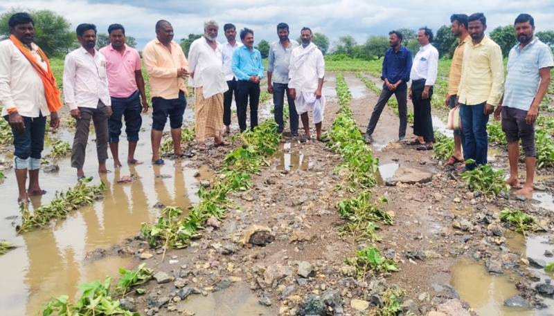 हिमायतनगर, एम अनिलकुमार| भारी बारिश के कारण कारला इलाके में 100 प्रतिशत फसलें बर्बाद हो गई हैं। गाँव का इलाका पानी में डूब गया है, खासकर नालों के पास के किसानों को भारी नुकसान हुआ है। इस नुकसान का मुआयना करने बोरगड़ी सज्जा के तलाठी थलगे किसानों के बांध पहुँचे और किसानों से मिले। फसलों को हुए नुकसान को देखने के बाद उन्होंने किसानों से बातचीत की।