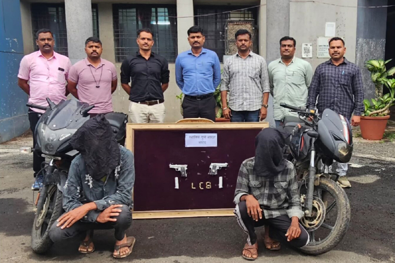 नांदेड़ (एम अनिलकुमार) नांदेड़ स्थानीय अपराध शाखा की टीम ने जाल बिछाकर देसी पिस्तौल बेचने आए दो लोगों को गिरफ्तार किया है। इस कार्रवाई में दो पिस्तौल, 14 ज़िंदा कारतूस और दो पल्सर मोटरसाइकिलें जब्त की गईं, जिनकी कुल कीमत ₹2,44,000/- है।