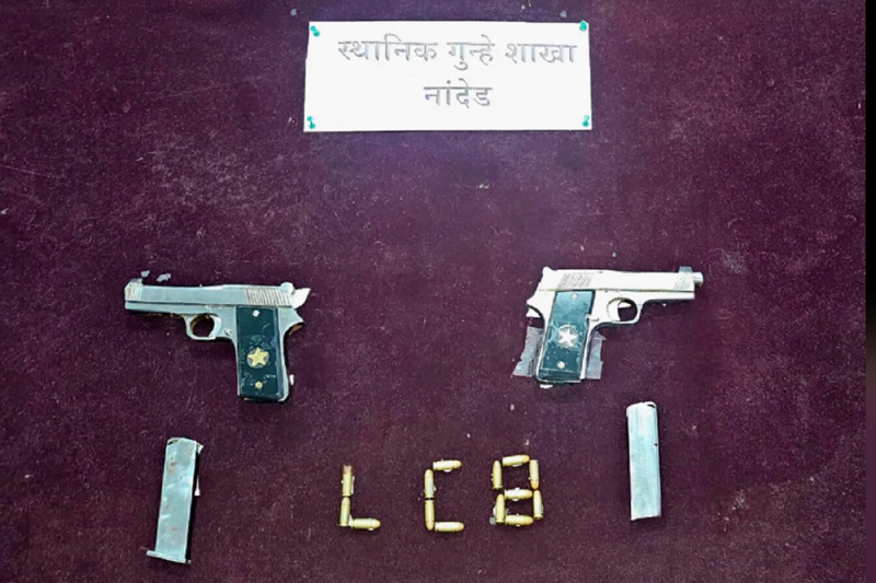 नांदेड़ (एम अनिलकुमार) नांदेड़ स्थानीय अपराध शाखा की टीम ने जाल बिछाकर देसी पिस्तौल बेचने आए दो लोगों को गिरफ्तार किया है। इस कार्रवाई में दो पिस्तौल, 14 ज़िंदा कारतूस और दो पल्सर मोटरसाइकिलें जब्त की गईं, जिनकी कुल कीमत ₹2,44,000/- है।