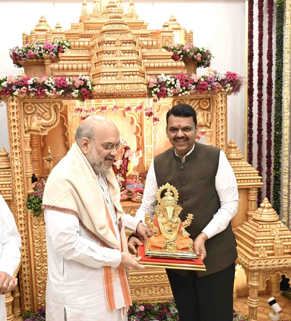 नांदेड/मुंबई (एम अनिलकुमार) केंद्रीय गृह मंत्री अमित शाह ने मुख्यमंत्री देवेंद्र फडणवीस के आधिकारिक निवास वर्षा पर सपरिवार श्री गणेश के दर्शन किए। इस अवसर पर मुख्यमंत्री श्री फडणवीस ने श्री शाह का स्वागत गणेश जी की प्रतिमा शॉल, श्रीफल और पुष्पगुच्छ भेंट कर किया।