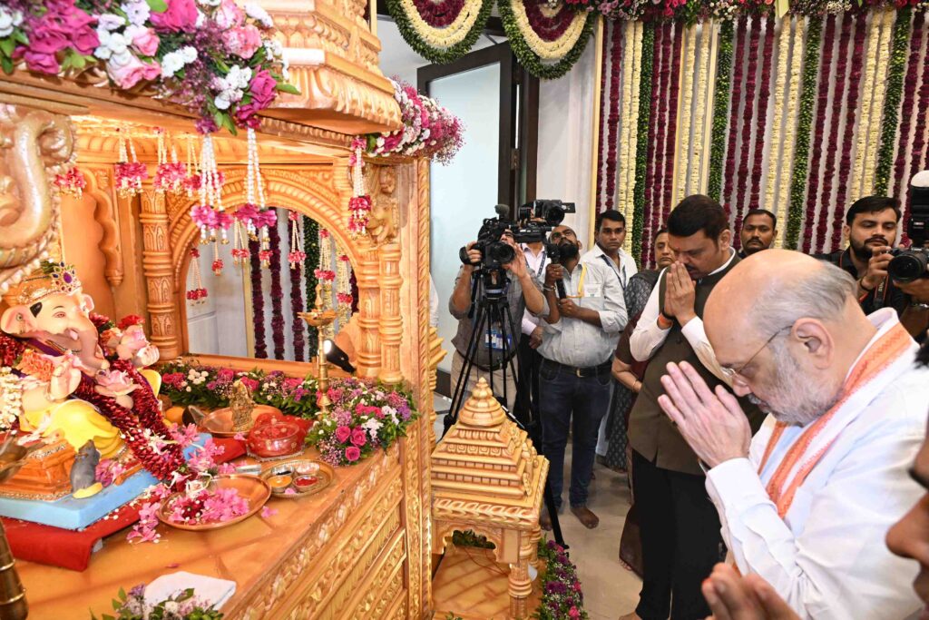 नांदेड/मुंबई (एम अनिलकुमार) केंद्रीय गृह मंत्री अमित शाह ने मुख्यमंत्री देवेंद्र फडणवीस के आधिकारिक निवास वर्षा पर सपरिवार श्री गणेश के दर्शन किए। इस अवसर पर मुख्यमंत्री श्री फडणवीस ने श्री शाह का स्वागत गणेश जी की प्रतिमा शॉल, श्रीफल और पुष्पगुच्छ भेंट कर किया।