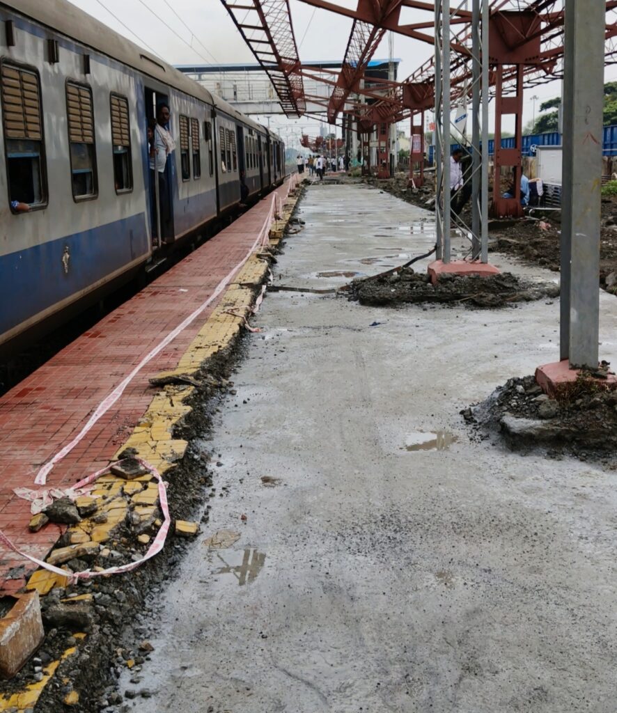 दो साल पहले बनाए गए रेलवे प्लेटफॉर्म की सीमेंट-कंक्रीट की परत तोड़कर दोबारा घटिया स्तर का काम किया जा रहा है। लोहे की पतली छड़ों का इस्तेमाल साफ दिख रहा है। यात्रियों का आरोप है कि ठेकेदार नियमों को दरकिनार कर करोड़ों का घोटाला कर रहा है। पुरानी इमारत को केवल बाजू सी दुसरी दिवार बनाकर प्लास्टर कर “नवीनीकरण” दिखाने की कोशिश हो रही है।